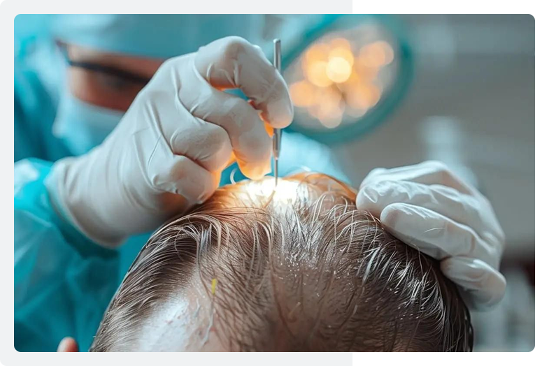 A hair transplant is a permanent surgical solution that redistributes your own healthy hair follicles. We gently move hair from the dense “donor area” at the back of your head to the thinning or bald “recipient area.
